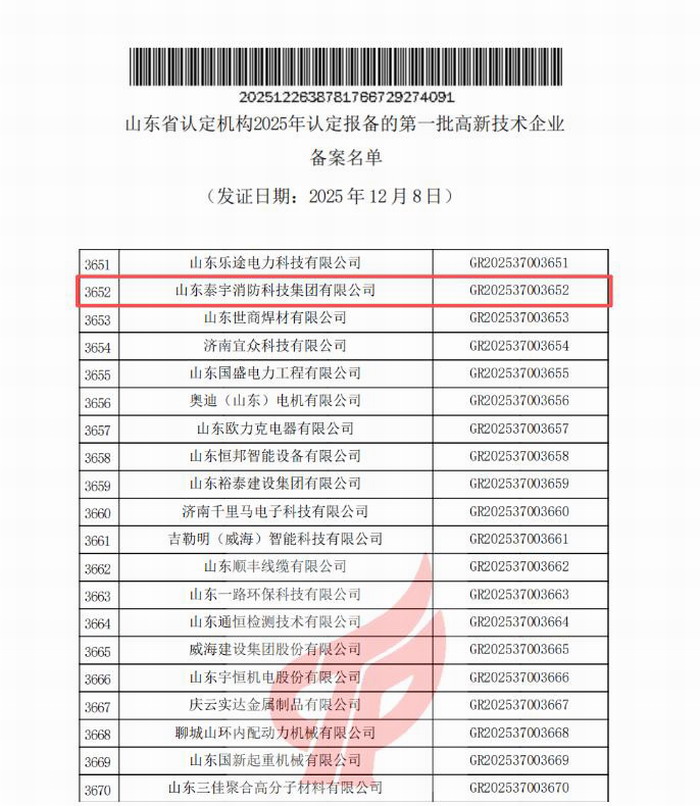 近日,全国高新技术企业认定管理工作领导小组办公室公示了2025年的国家高新技术企业认定名单,我公司凭借深耕消防行业的专业实力、持续的创新投入与规范的体系管理,顺利通过严格评审,再次成功斩获“国家高新技术企业”荣誉称号!